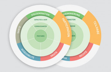 Le travail se basant sur la CDPH promeut certaines compétences des professionnel·les (comportements, capacités et connaissances). Celles-ci sont présentées dans le navigateur CDPH. Elles s’appuient sur les cinq dimensions centrales de la CDPH: la discrimination, la participation, les droits, la mobilité/la technique et la santé.